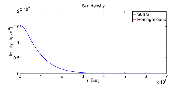 Такой разрыв в результатах однородной и неоднородной модели Солнца объясняется тем, что большая часть массы светила сосредоточена ближе к его центру. Материя внутри Земли распределена более равномерно.