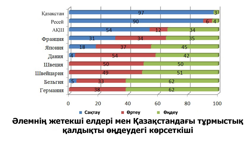 Еуропаның іс-тәжірибесін мұқият зерттеген қазақ ғалымдары Еуро аймақтағы елдердің жергілікті билік орындары бірінші кезекте жыл сайын пайда болатын тұрмыстық қалдықтардың есебін айқындап, олармен тиімді күрес жүргізіп жатқанына көз жеткізген екен. Есеп жүргізу барысында тұрмыстық қалдықтардың жалпы салмағы, олардың қандай қоқыс екені компьютерлік бақылауға алынып, оны өңдеген кәсіпорындар қаншалықты пайда тауып, шығын шегетінін бәрін-бәрін есептеген. Өз кезегінде тұрмыстық қалдықтарды өңдеумен айналысатын жекелеген компаниялар жергілікті экологиялық қызмет орындарына өңдеуден өткізген тұрмыстық қалдықтарының жалпы салмағы мен олардың сапасы жайында нақты мәлімет беріп тұрады. Осылайша тұрмыстық қалдықтарды өңдеу, кәдеге жарату ісмен кешенді жұмыс жүргізудің арқасында Еуропаның дамыған елдері – Германия, Бельгия, Швейцария және Швециялар жоғары нәтижеге қол жеткізіп отыр. Айталық, қазіргі таңда Германияда полигондарда сақтауда тұрған тұрмыстық қалдықтардың көлемі бар болғаны 0,5%-ды құрап отыр. Бұл елде қарапайым халықтың тұрмыстық қалдықтарды сұрыптап жинау ісі жақсы жолға қойылған. Бұл өз кезегінде қалдықтарды қайта өңдеу ісіне көп көмегін тигізіп отырғанын атап айтуға болады.