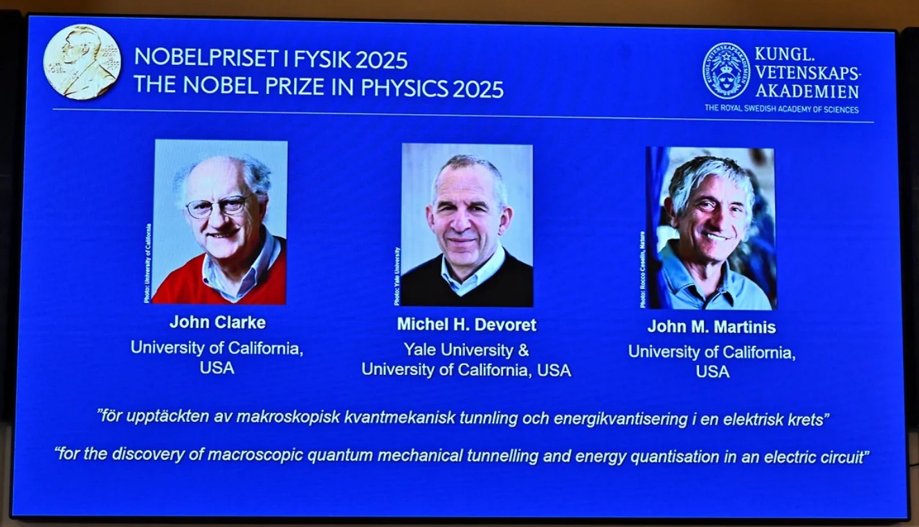 Лауреатами Нобелевской премии по физике 2025 года стали британец Джон Кларк, американец Джон М. Мартинис и француз Мишель Х. Деворе за исследование макроскопического квантово-механического туннелирования.