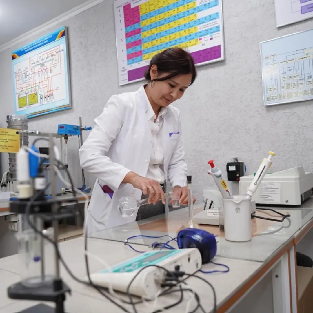 М.Әуезов атындағы Оңтүстік Қазақстан зерттеу университетінің жас ғалымы, PhD Серікбаева Бағдагүл Сәдуехасқызы жаңа өнім дайындап жатыр.