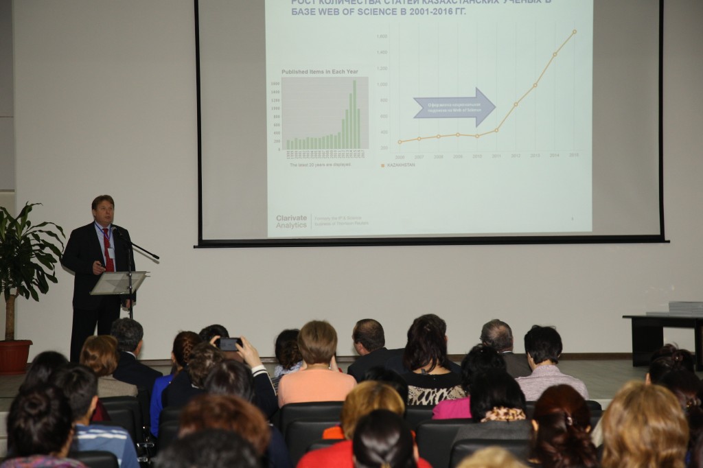 В 2011 году по инициативе Президента Казахстана 300 вузов и научных организаций страны получили бесплатный доступ к ведущим международным электронным научным базам данных. В результате эффективность работы отечественных ученых значительно выросла. Число публикаций статей на английском языке в журналах, имеющих рейтинг в научном мире, в 2015 году более чем в 4 раза превысило значения 2011 года. Всего в авторитетных зарубежных научных изданиях за этот период было опубликовано 4835 работ казахстанских авторов. Компания Thomson Reuters активно работает в Казахстане на протяжении последних четырех лет. В настоящее время в штате компании насчитывается 60 000 человек, работающих в более чем 100 странах по всему миру. Компания предлагает обширный спектр услуг в таких областях, как финансовые рынки, интеллектуальная собственность, исследовательская деятельность, решения для аналитики в области научно-исследовательской деятельности, налогообложение и бухучет, юриспруденция и СМИ. Заказчиками компании в области научных исследований являются более 15 000 учебных и научно-исследовательских учреждений, а также свыше 20 млн пользователей по всему миру.
