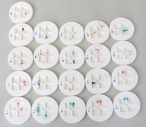 Биолог и его коллеги соорудили мини-муравейники на 150-300 особей Lasius niger и начали наблюдать, как те бегают по своим делам. Кормили муравьев сахарной водой, в которую подмешивали синий и красный красители. Через два месяца в определенных уголках муравейников появились яркие пятна двух цветов.