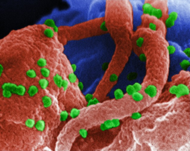 Частицы ВИЧ на поверхности лимфоцита. (Фото Centers for Disease Control - digital version copyright Science Faction / Science Faction / Corbis.)