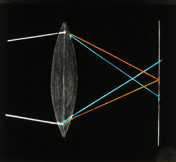 Линза из стекла по-разному фокусирует лучи разного цвета. Это связано с различием показателя преломления материала для разных длин волн. Фото: Tekniska museet/Flickr