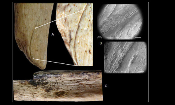 Исследователи подчёркивают: надрезы оставлены каменными орудиями. На других костях с этого же памятника есть следы зубов хищников, они заметно отличаются от описанных.