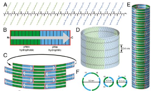 Разработка процесса, позволяющего производить большое количество наноструктур, таких как нанотрубки, с идентичными параметрами, является достаточно сложным делом, требующим чрезвычайно высокой точности поддержания всех параметров процесса. В течение нескольких последних лет ученые из Национальной лаборатории имени Лоуренса в Беркли изучали различные виды полимеров, относящихся к классу пептидов, и наконец им удалось обнаружить целое семейство синтетических полимеров, которые, будучи помещенными в воду, самостоятельно формируют прозрачные полые нанотрубки, диаметром в 100 нанометров и такой же длины.