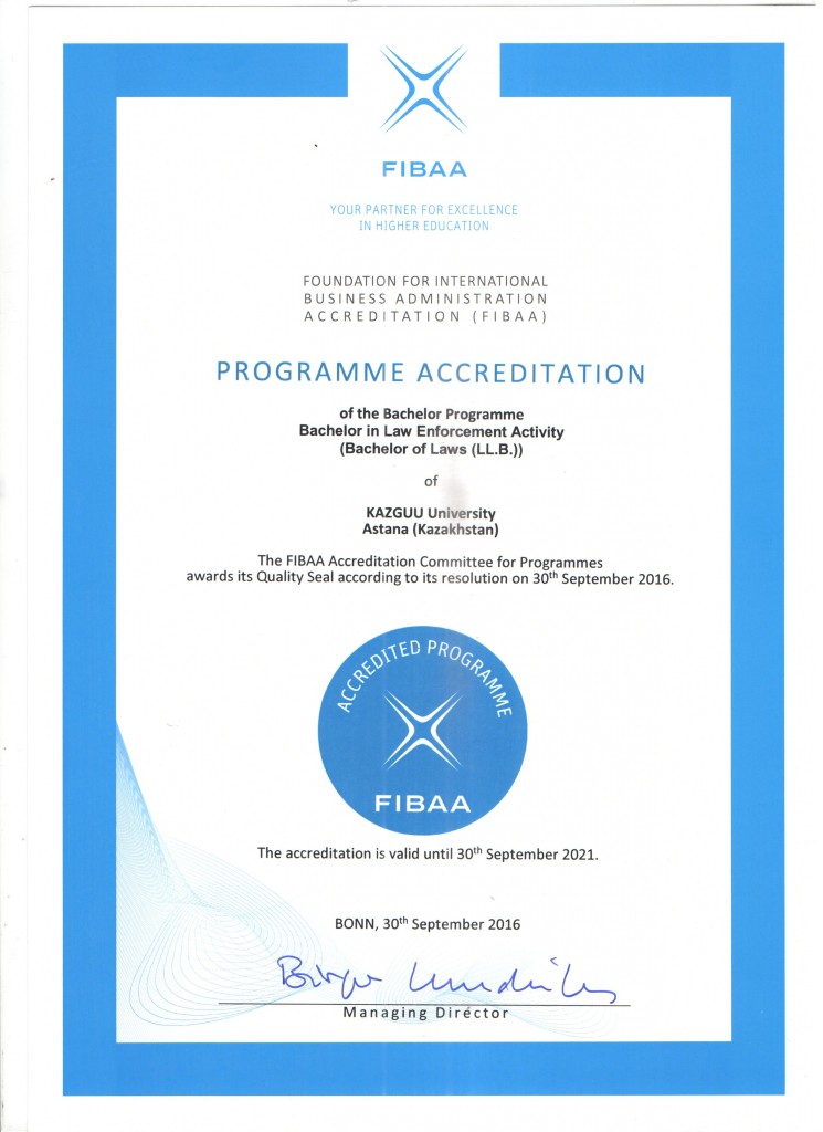 Университет КАЗГЮУ прошел международную аккредитацию FIBAA