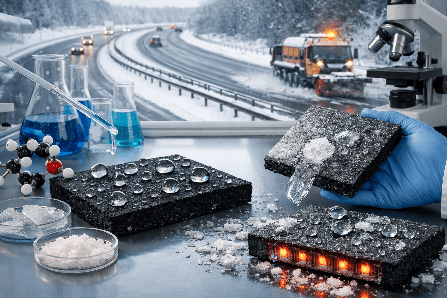 Ғылыми жоба: Жол құрылысы үшін мұзға қарсы перспективалық супергидрофобты материалдар жасау