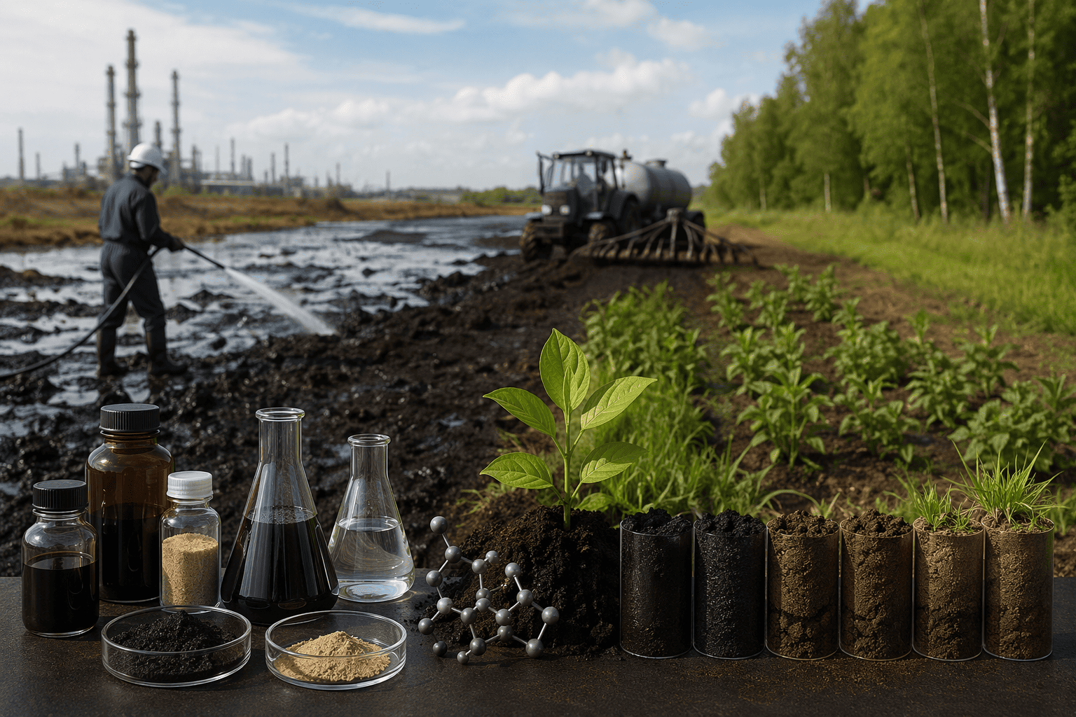 Жоба аясында сорбциялық және детоксикациялық қасиеттері күшейтілген модификацияланған органикалық гуминдік биопрепараттар (N, Si, NPK, Fe, Ca, Mg, CO2) әзірленді. ИҚ-спектроскопия көмірсутектерді байланыстыруға қатысатын белсенді карбоксилдік, фенолдық және гидроксилдік топтардың бар екенін растады. Мұнаймен ластанған топырақтарды сынау барысында 90 тәулік ішінде гравиметриялық әдіс бойынша (МЕМСТ/РД 52.18.647-2003) мұнай өнімдерінің мөлшері 70–85%-ға дейін төмендегені анықталды. Сонымен қатар, топырақтың құрылымы, су және ауа өткізгіштігі жақсарды, микробиологиялық белсенділік қалпына келді, табиғи өсімдік өскіндері пайда болды. Алынған нәтижелер гуминдік заттардың мұнаймен ластанған жерлерді рекультивациялау барысында сорбенттер және биостимуляторлар ретінде тиімді екенін және технологияны кең көлемде енгізу мүмкіндігін растады.